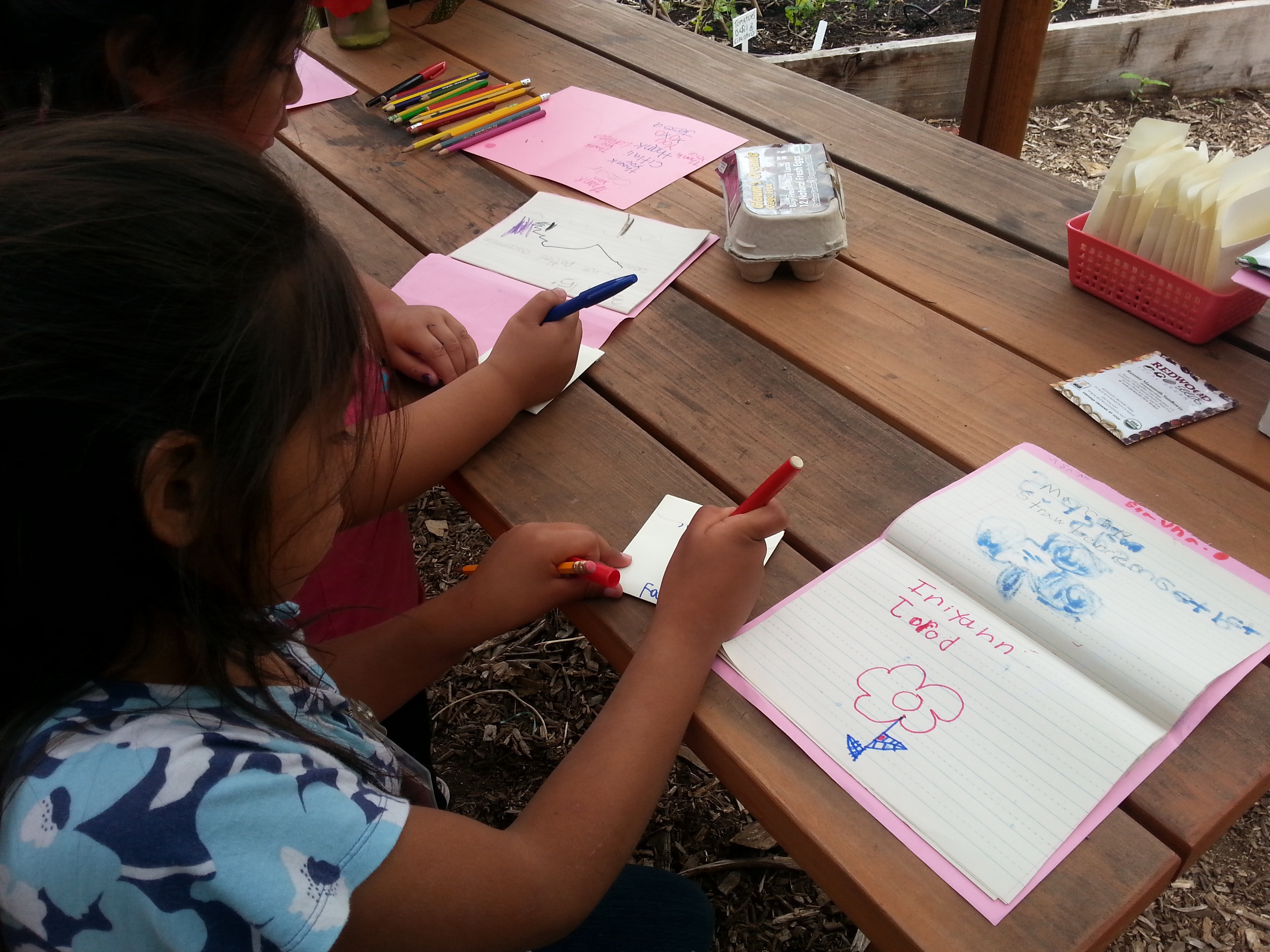 At the journal stations, the kids write down their observations for that day while in the garden.