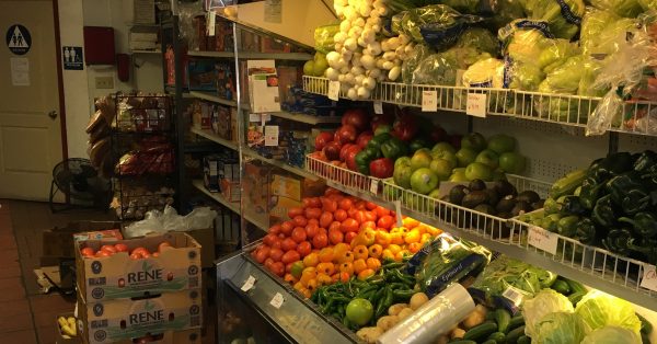 The meat market sits on one side of the tienda. The fruits and vegetables sit on the other side. There are two separate entrances with parking spaces in front.